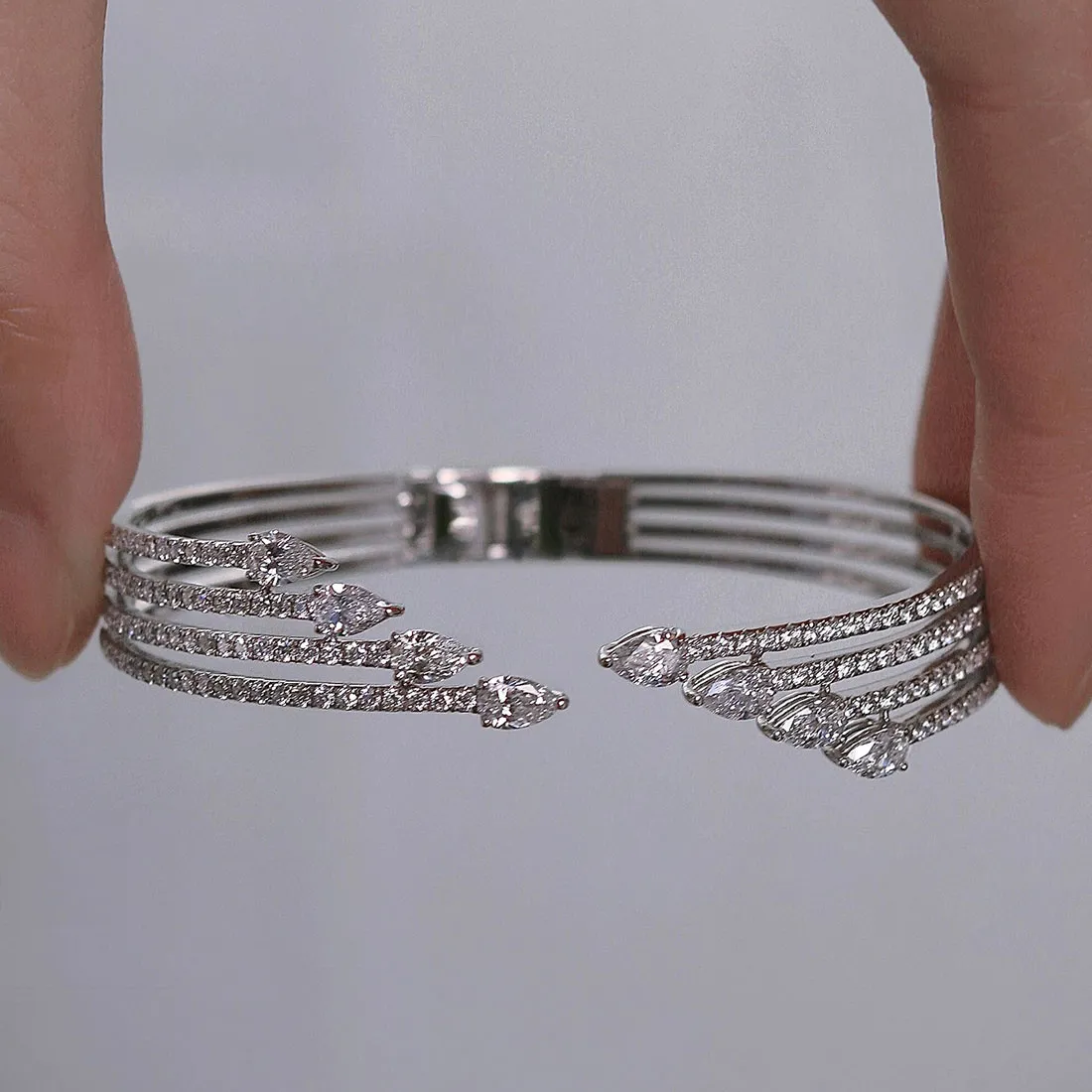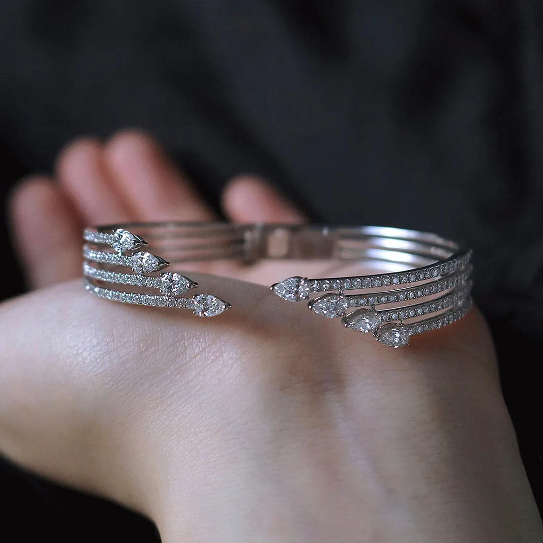 The 3.60 Carat Pear-Cut Designer Diamond Bracelet delivers a striking balance of elegance and radiance.
