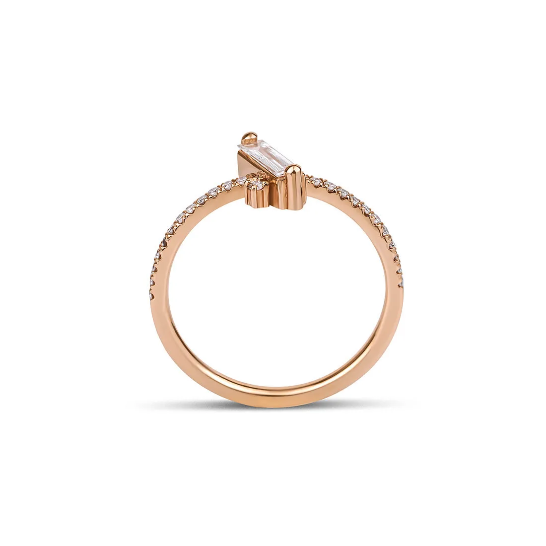 0.45 Carat Modern Design Baguette Diamond Rose Gold Ring