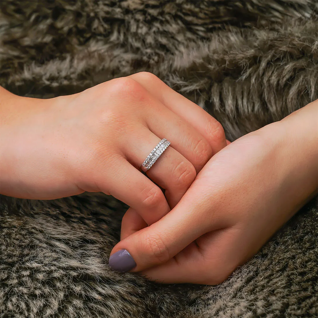 The 0.51 Carat Baguette Diamond Half-Eternity Ring shines with a blend of modern sophistication and timeless charm. Crafted to symbolize everlasting love, it features a refined mix of baguette and round diamonds. The design ensures a luxurious sparkle while keeping an elegant and graceful silhouette.