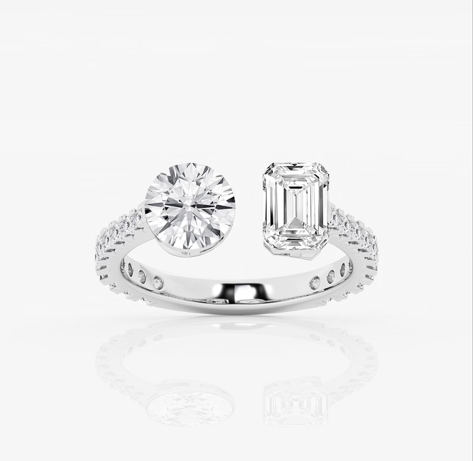 With its contemporary silhouette and twin-stone design, this ring transitions beautifully from day to night. It can be worn alone as a centerpiece or stacked with other rings for added impact. Whether marking a relationship, celebrating a personal journey, or elevating your everyday look, the 1.03–1.09 ct E Color VS1 Lab Grown Diamond Gemelo Ring offers timeless charm with a modern edge.