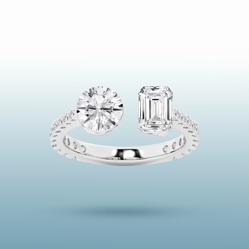 The 1.03–1.09 carats E Color VS1 Lab Grown Diamond Gemelo Ring celebrates sustainable luxury. The diamonds are lab-grown, offering all the sparkle of natural stones with none of the environmental or ethical drawbacks. With identical chemical and optical properties to mined diamonds, these gems provide peace of mind and lasting elegance. Choosing lab-grown means embracing innovation and protecting our planet’s resources.