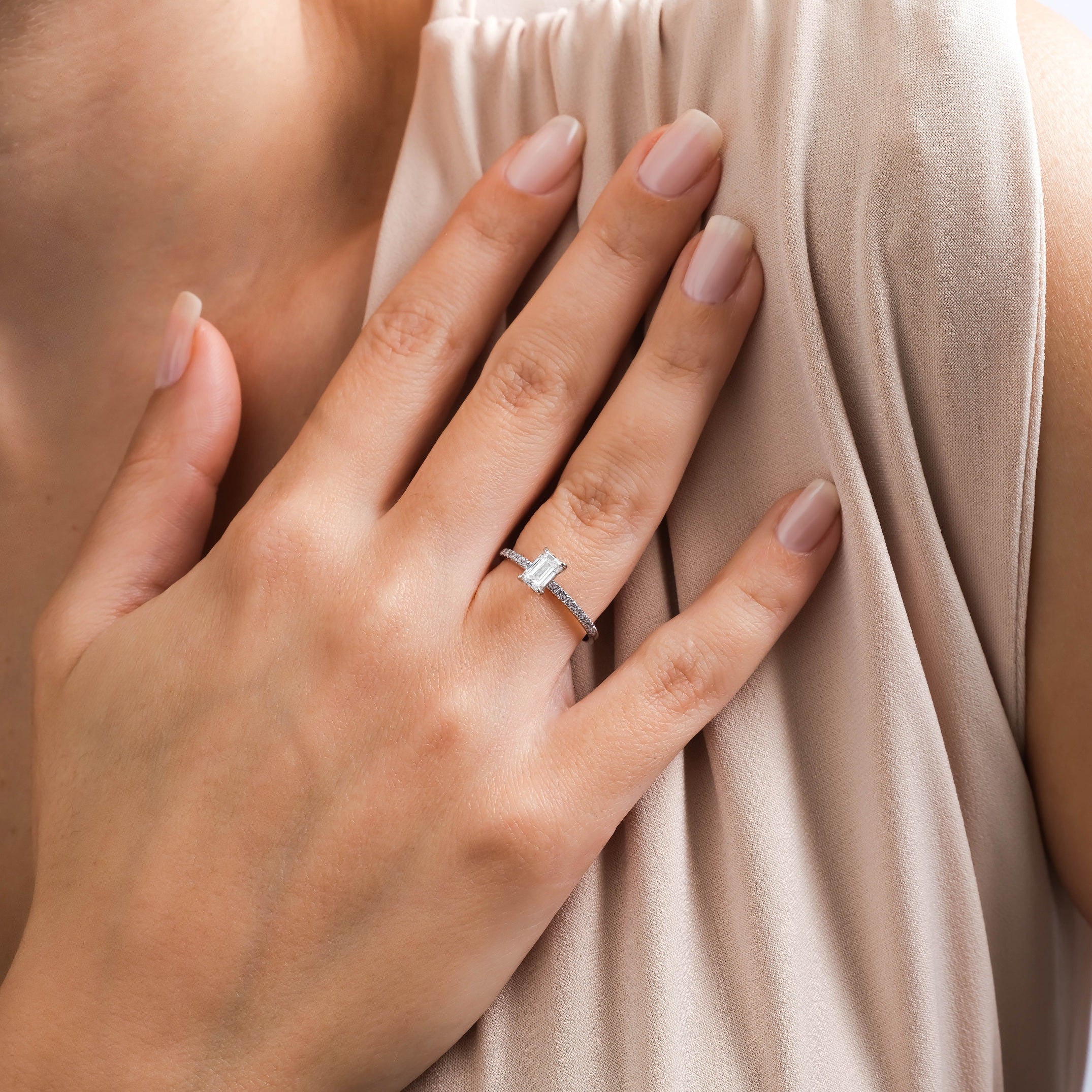Choosing a 1.03 c F Color VS Lab Grown Emerald Diamond Ring means embracing sustainability without sacrificing style. Lab-grown diamonds are created through advanced technology that mimics natural conditions—resulting in stones that are identical in appearance and structure to mined ones. This process reduces environmental impact and supports ethical manufacturing practices, making this ring a smart and stylish investment in the future.
