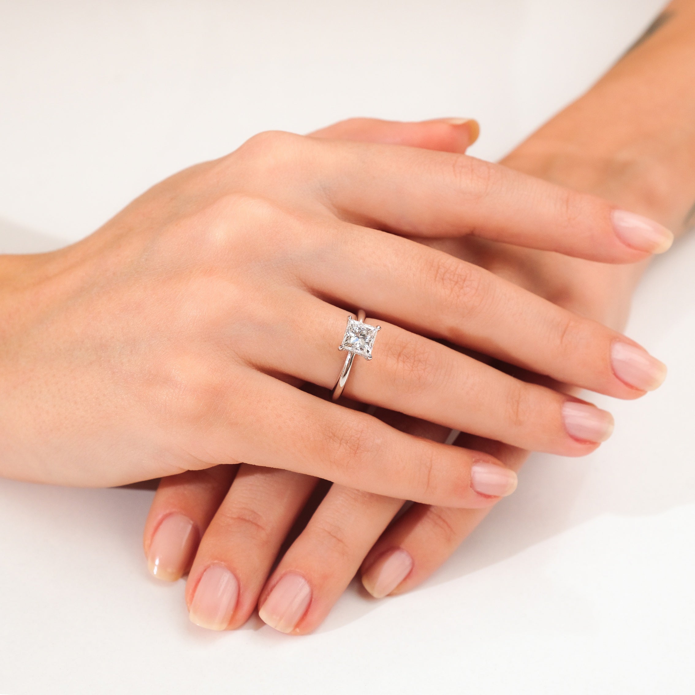 This ring is as easy to wear as it is beautiful. With a perfectly weighted band and smooth contours, it fits naturally and comfortably on the finger. Whether worn alone or with a matching band, the 1.55 c E Color VS1 Lab Grown Princess Cut Diamond Ring blends seamlessly into your lifestyle—ideal for celebrations, proposals, or marking personal milestones.