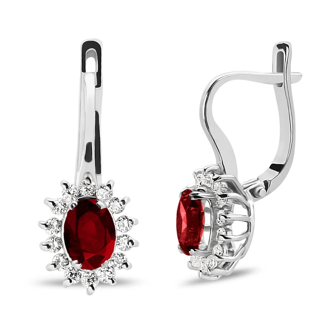 The 1.62 Carat Diamond Ruby Earrings blend timeless elegance with vibrant energy. These earrings feature two rich, glass-filled rubies totaling 1.20 carats, each chosen for its deep crimson hue and captivating glow. Surrounding the rubies are 28 round brilliant diamonds, totaling 0.42 carats, with G color and VS/SI clarity. This precise balance of diamond sparkle and ruby warmth creates a luxurious harmony that draws the eye instantly.