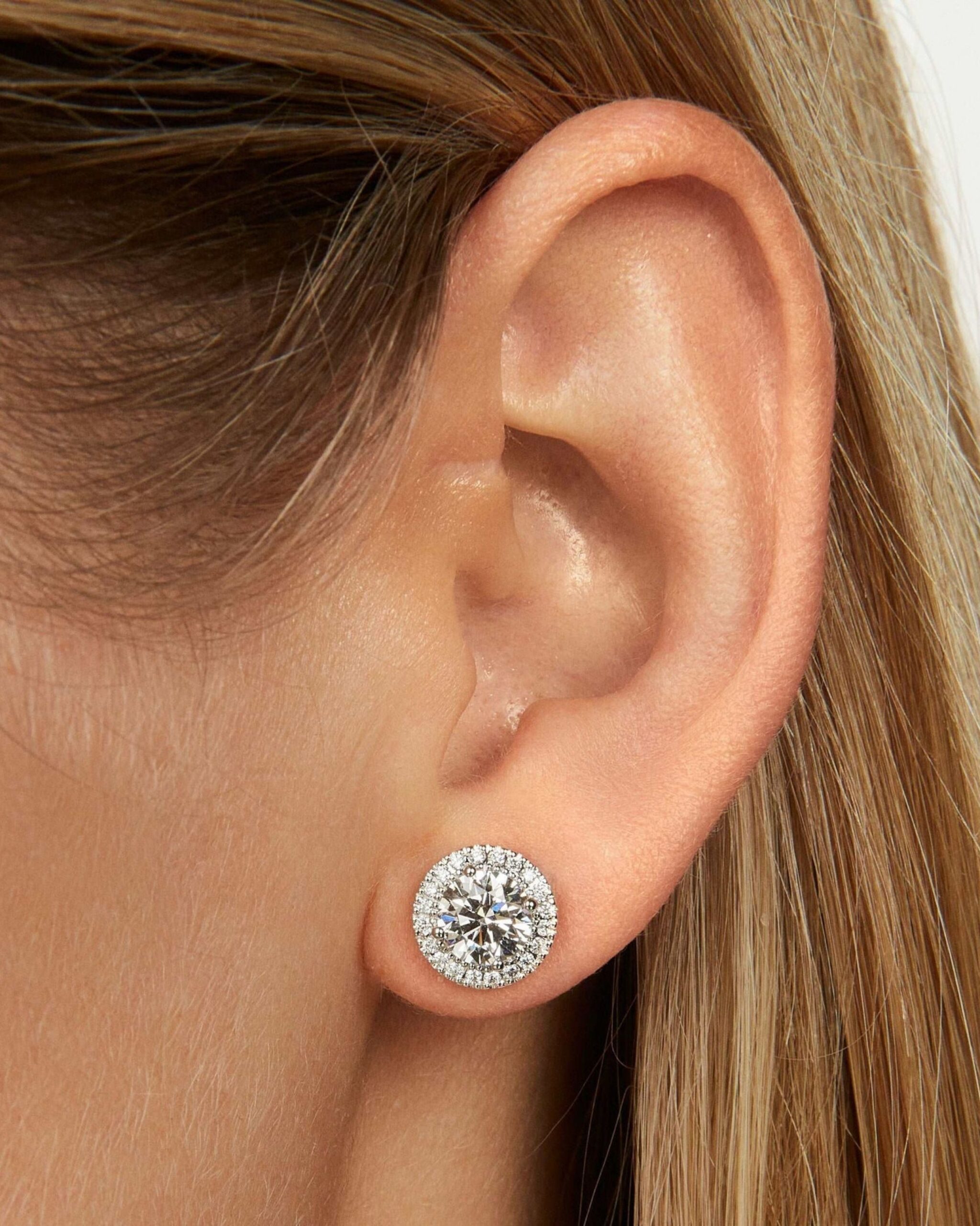 4.50 Ct E Color VS1 Lab Grown Diamond Halo Solitaire Earrings