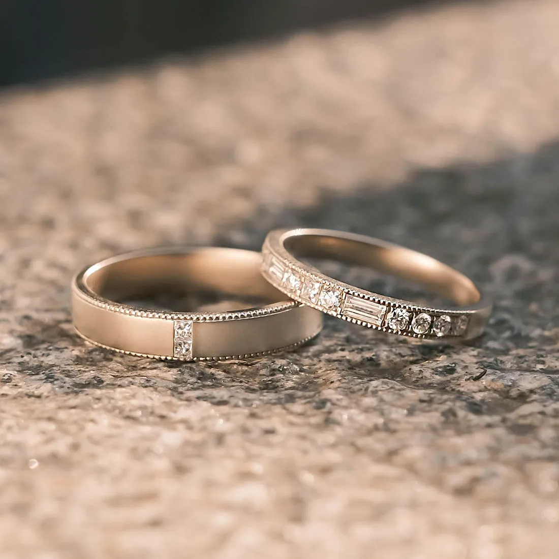 Custom Design Baguette Diamond Couple Wedding Band Ring